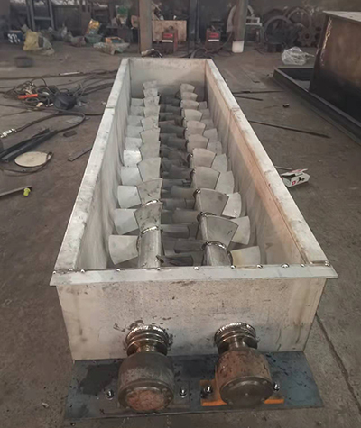 雙軸粉塵加濕攪拌機采用兩組螺旋葉片進行攪拌,具有攪拌效率高,占地面積少,螺旋葉片采用高耐磨特種合金或復合陶瓷,使用壽命長等特點.